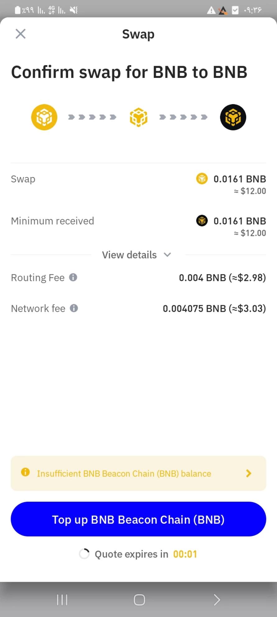 مقداری بایننس کوین دارم می خواهم به بایننس اسمارت چین تبدیل کنم اما با خطای )شارژ کنید مواجه است