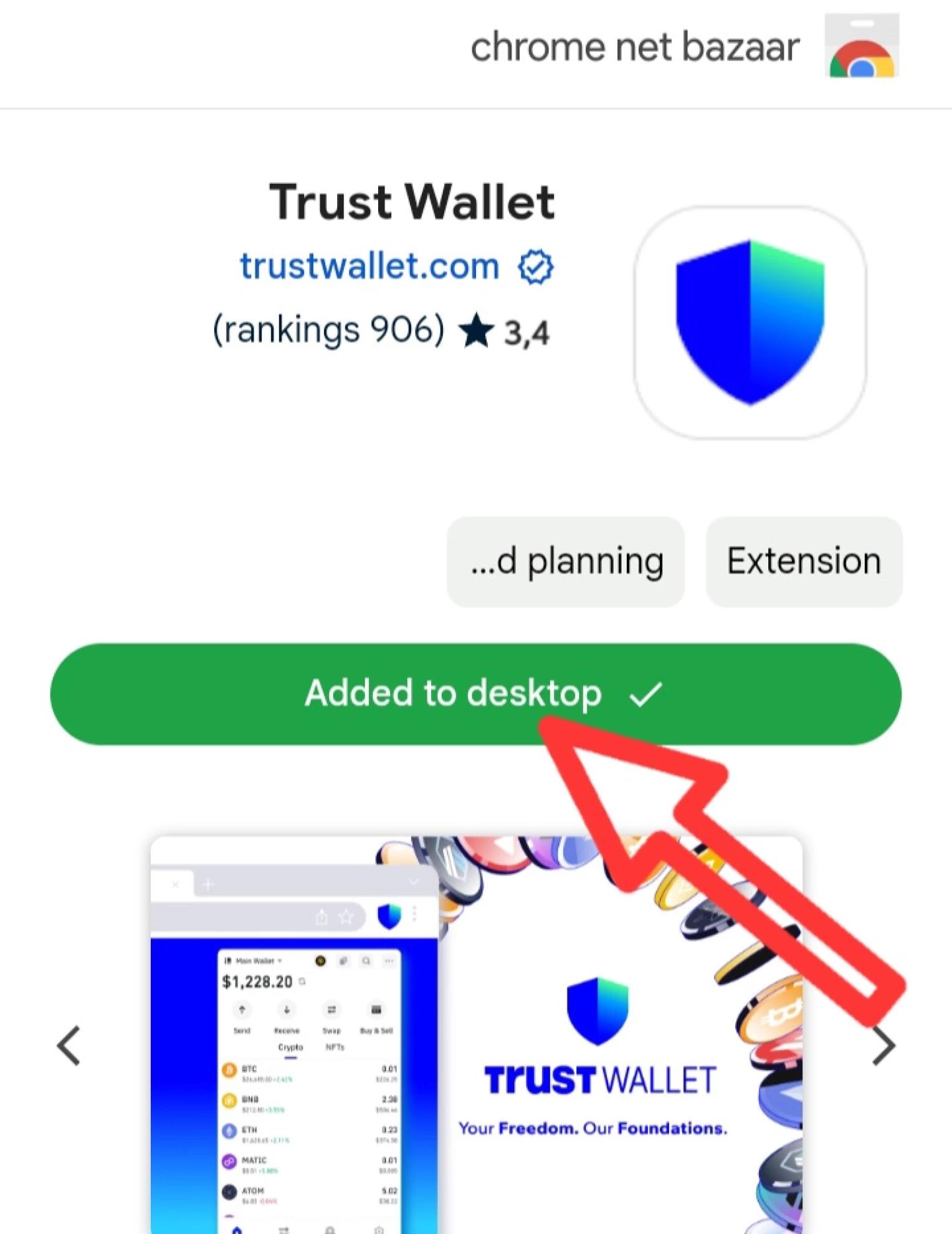 ۱. نصب افزونه Trust Wallet