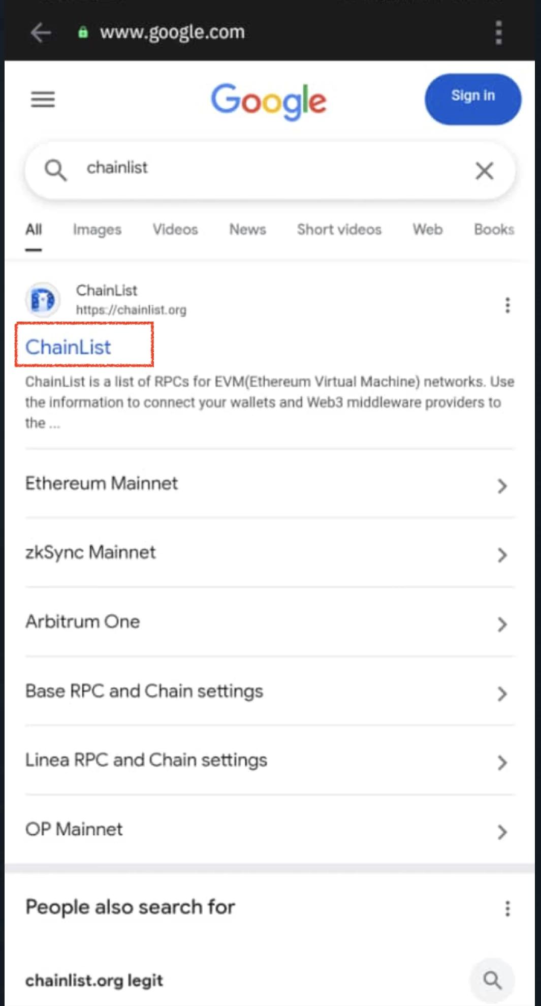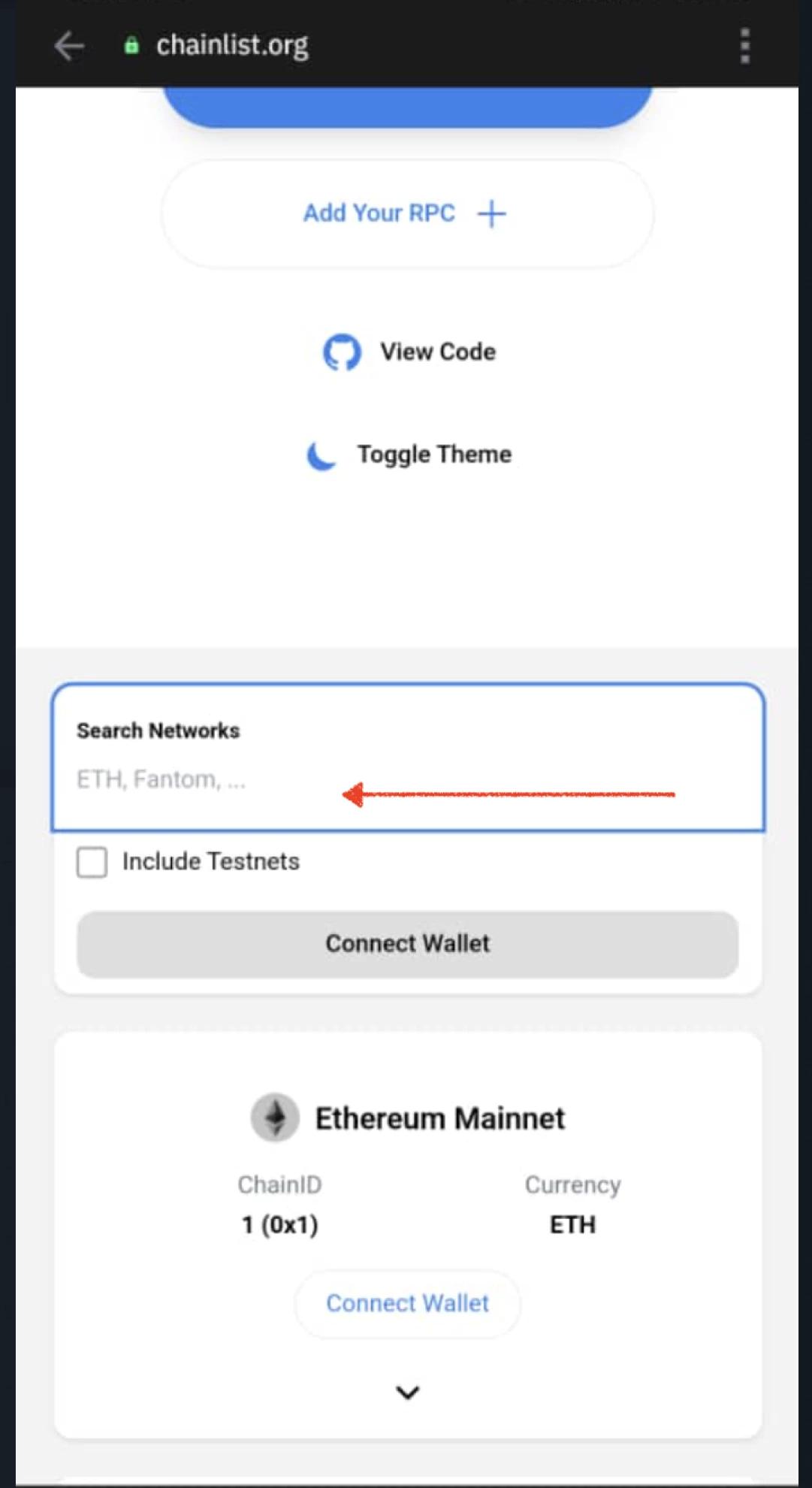 در قسمت سرچ عبارت chainlist رو جستجو کنید