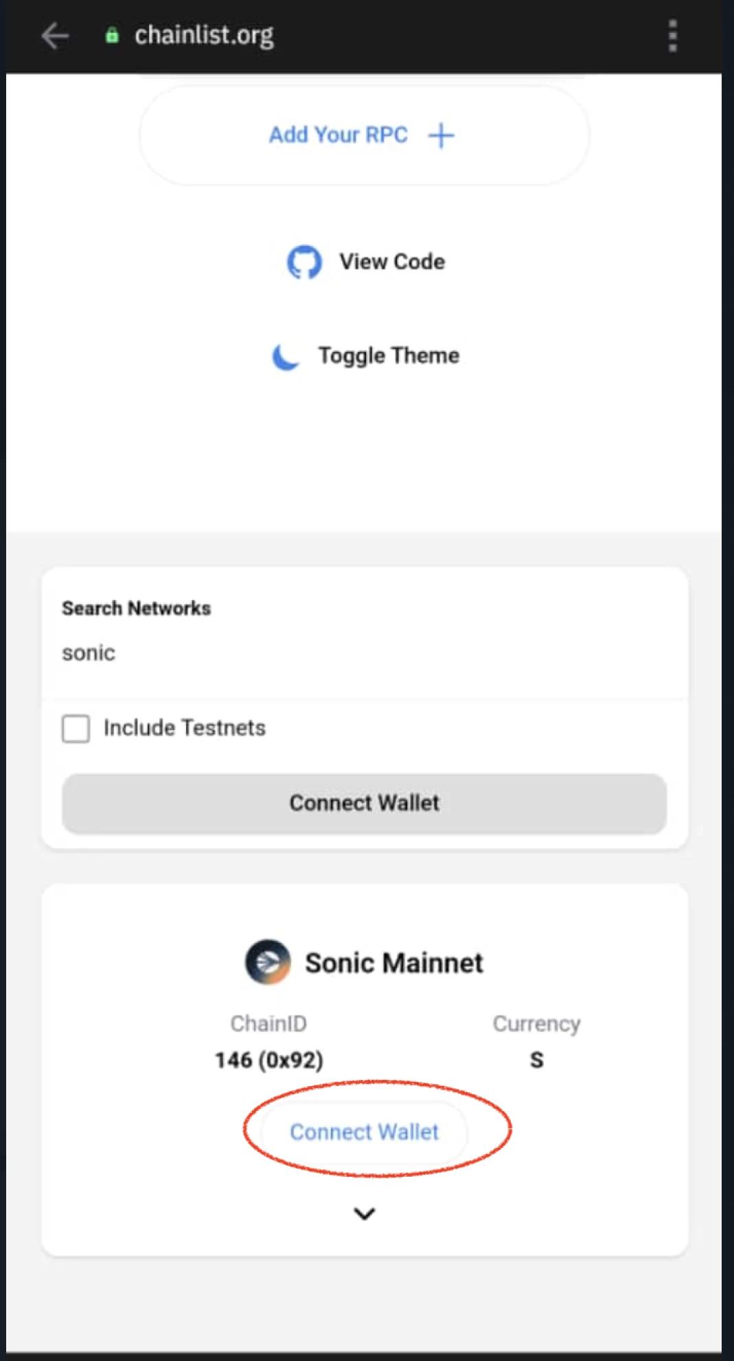 شبکه سونیک به شما نمایش داده میشود روی connect wallet کلیک کنید