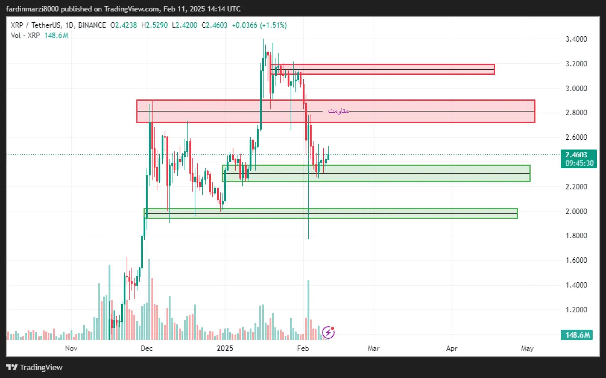 با سلام خدمت تمامی دوستان عزیز وقتتون بخیر ارز XRPUSDTدر تایم فریم روزانه دو ناحیه بسیار مهم برای خرید کردن میتونه 1.970-2.22 دو ناحیه باشه و دو ناحیه برای فروش میتونه 2.80-3.10 دلار باشه اگر بتونه بالای 3.40تثبیت بده میتونه تارگت های 5-8-10 دلار بهمون بده پر سود باشید