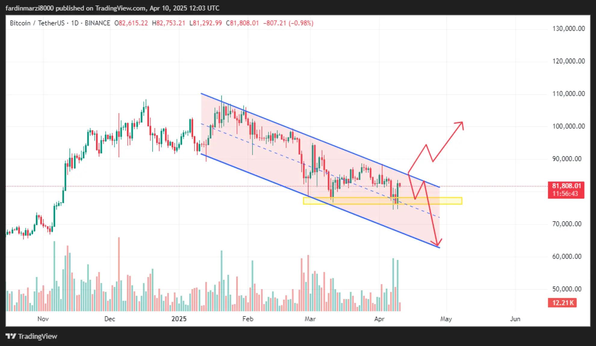 بیت کوین در تایم فریم روزانه اگر بتونه بالا تر از 86 هزار تثبیت بده میتونه تغییر استراکچر بده و تا سقف 108 هزار حرکت کنه اما اگر نتونه بالا تر تثبیت بده و در داخل کانال بمونه میتونه تا کف کانال حرکت کنه و نواحی 62تا 64 رو بهمون بده برای دوستانی که ترید میکنند یا هولد هستن به شدت مراقب باشند