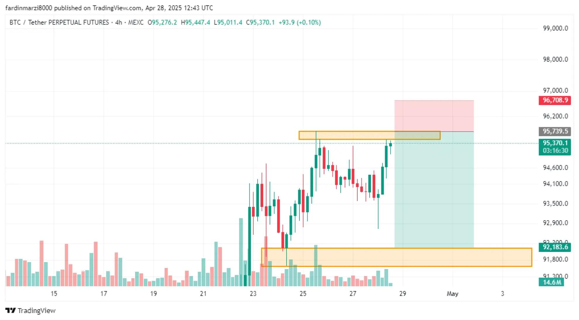 بیت کوین در تایم فریم 4 ساعته روی یک اوردربلاک بشدت مهم قرار دارد که میتونه از این ناحیه یک اصلاح خوبی بهمون بده در اندیکاتور rsiواگرایی منفی کاملا قابل مشاهدس و میتونه از این ناحیه ریزشی بشه