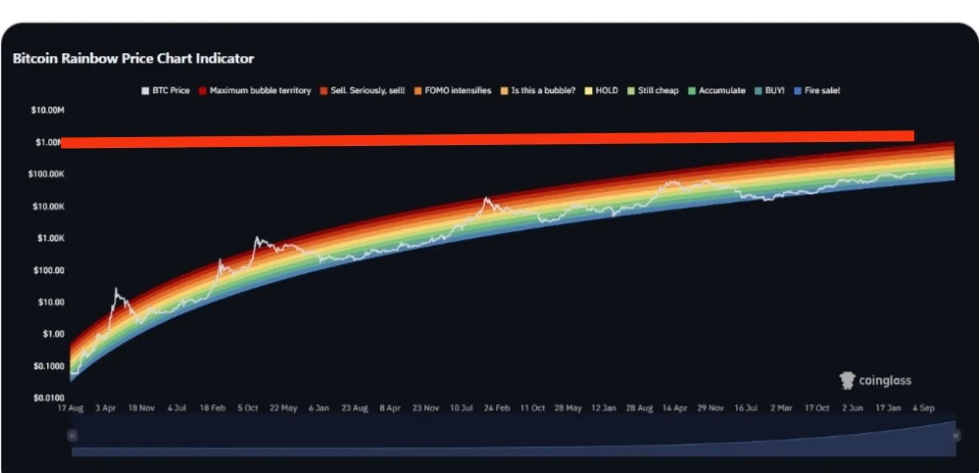 دوستان این تحلیل رنگین کمانی بلللند مدتی بیت کوین هست قشنگ دقت کنین یکی دو دوره اول تونسته از خط قرمز بگذره دوره بعدش تا خط سقف قرمز رسیده و دوره بعدش به خط نارنجی تقریبا رسیده حالا اینجا اگه بخواد مثل یکی دو دوره قبل عمل کنه طبیعتاً میاد حوالی نارنجی و قرمز بعد می‌ره برای سال خرسی چند ساله