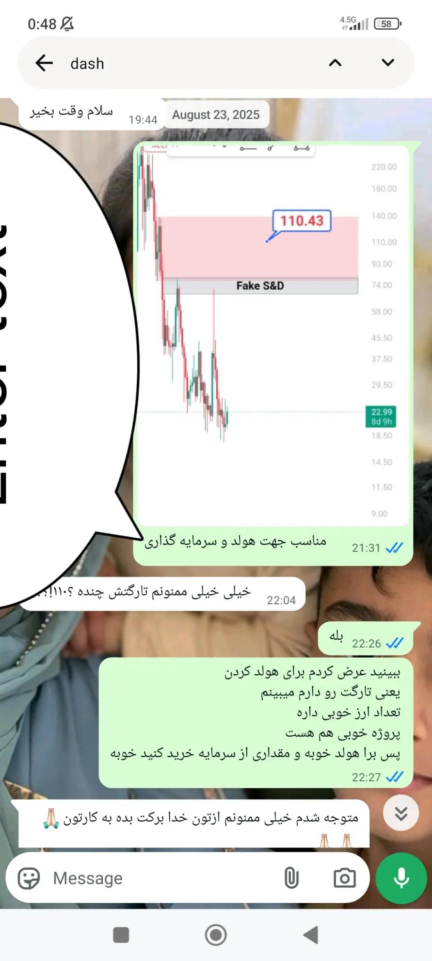 تحلیل دش رو من 23 آگوست یعنی زمانی که ۲۲ دلار بوده برای دوستان انجام دادم و تارگت رو دید تمام